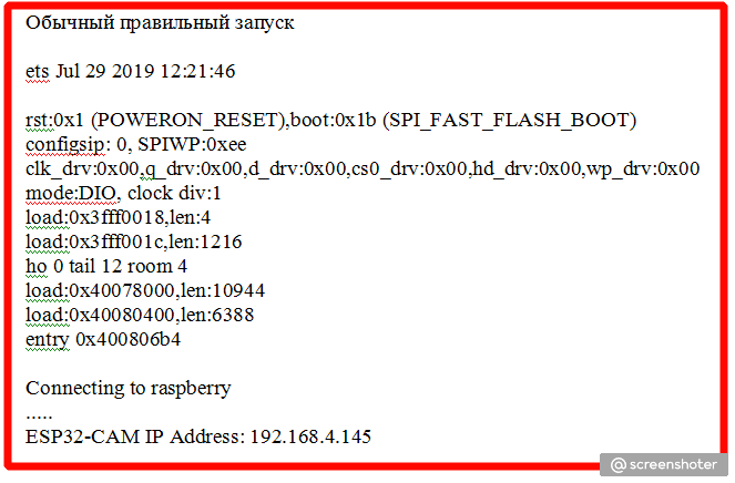 Добиваемся чтобы в COM-порт при перезагрузке модуля ESP32-CAM по кнопке RST вышло такое сообщение.